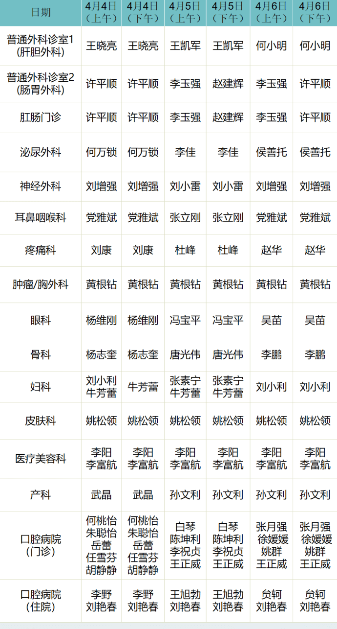 - 外科病院門診排班表