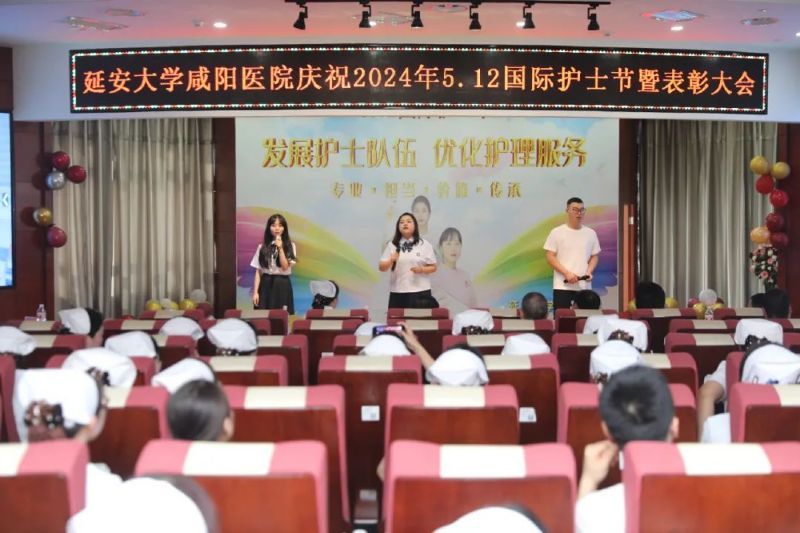 暮春醉五月,雨露潤芳菲。2024年5月9日14時,延安大學咸陽醫院在腦血管病院第三學術廳隆重舉行主題為“專業? 擔當?價值?傳承”的第113個國際護士節慶祝活動暨表彰大會。精誠醫療集團董事局主席兼延安大學咸陽醫院董事長李衛軍、延安大學咸陽醫院院長姚曉峰及院領導班子成員、各職能部門負責人、全院護士長及受表彰的優秀護士、優質護理服務先進個人、優秀帶教老師及護士代表共計360余人參會。退休護理專家李青、吳麗萍受邀參會。