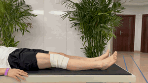 4、直腿抬高:膝關節(jié)伸直抬高距離床面30度,堅持至力竭,隨后放松,2周以內(nèi)每天15-20次即可。