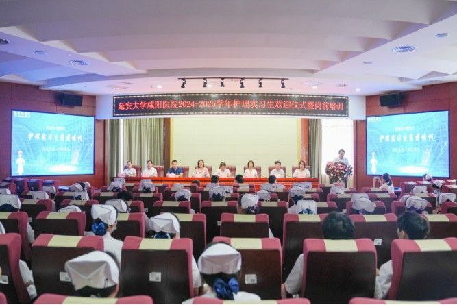 臨床實習是學校教育的延伸,是專業理論與實踐相結合的關鍵。為進一步規范實習生管理,幫助護理實習生盡快完成角色轉換,保障實習期間護理安全,延安大學咸陽醫院護理教學管理委員會于2024年7月18日-7月20日,在腦血管病院第三學術廳召開“2024-2025年度護理實習生歡迎儀式暨崗前培訓”。院長助理兼護理部主任楊敏、科研教學管理中心副主任陳青、護理教學管理委員會主任委員黨文婷、消防科科長郭俊鵬、感染控制辦公室干事樊格以及全體教學委員會委員出席了開幕式,來自延安大學西安創新學院等8所學校154名護理實習生參加培訓,會議由護理部教學干事孫姣姣主持。