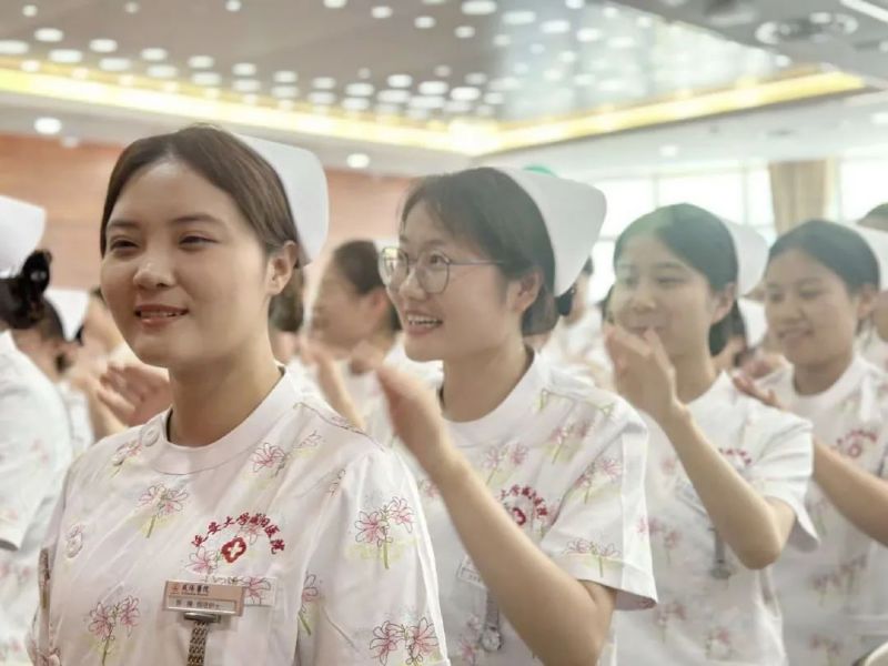 新入職護士展示才藝,合唱《我們的明天》、展示《白衣時裝秀》。現場氣氛熱烈,既展現了新入職護士的多才多藝和專業素養,又表現了她們朝氣蓬勃和積極向上的良好精神風貌。