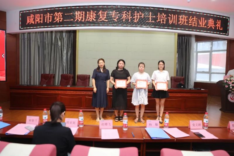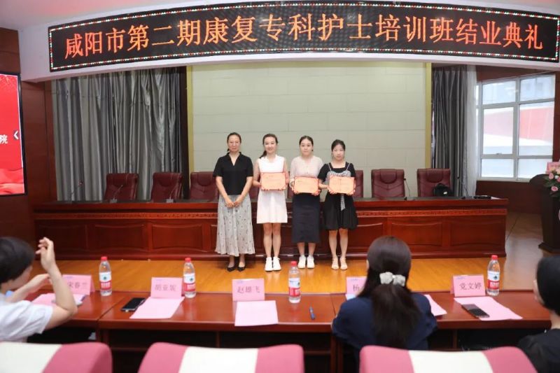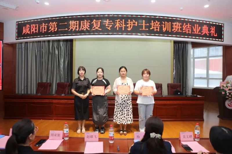 在大家的熱烈掌聲中,楊敏院長助理、胡亞妮主任、宋春蘭總護士長、徐金強總護士長、劉敏護士長分別為培訓班優秀學員、優秀帶教老師、科研能力考核優秀獎、專科理論考核優秀獎、專科技能考核優秀獎等頒發榮譽證書。康復專科護士培訓班班主任劉巧云護士長、趙茹護士長分別為學員頒發結業證書。