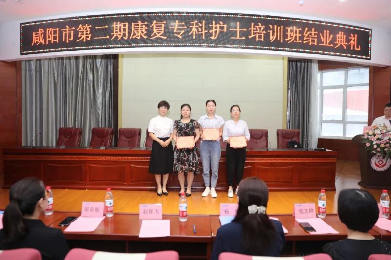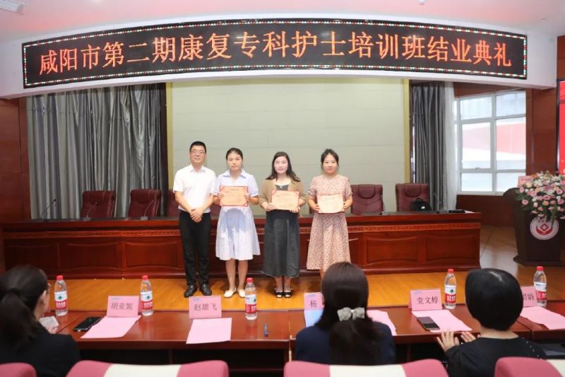活動伊始,延安大學咸陽醫院腦血管病院趙雄飛院長致辭。他對全體學員順利結業表示祝賀,并向各級領導對康復護理專科護士培訓工作的支持、指導和幫助表示感謝,特別對基地負責人的傾心付出和學員們的努力拼搏表示贊賞。他指出,在健康中國的大背景下,培養高素質的康復專科護理人才,是促進康復護理專業發展的重要策略和方向。今年培訓班共接收學員24名,通過為期兩個月的理論培訓和臨床實踐,實現了培訓班“以專業培訓目標為導向,以職業技能培訓為根本”的培養目標。