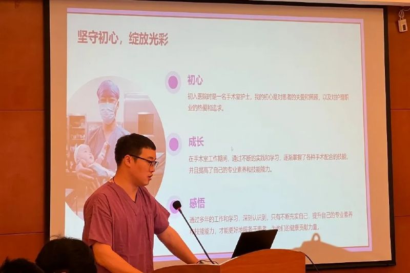 新入職男護士代表趙澤在發言中與大家分享了自己入職以來的成長經歷,并呼吁大家堅定信念、攜手共進、披荊斬棘,在護理這條充滿光明和夢想的道路上越走越遠,守護生命的花開,四季恒長!