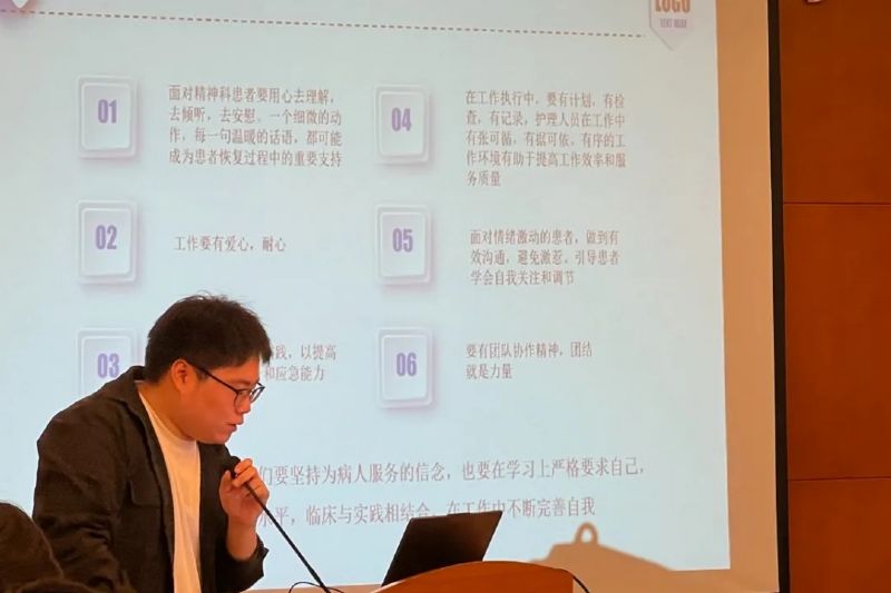 接下來2024年新入職男護士在破冰環節中依次作自我介紹,這不僅加深了他們之間的相互了解,還促進了團隊的融合。同時也展示了新護士們的個性,增強了他們的歸屬感,并激發了他們的工作動力。