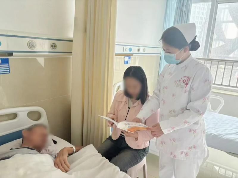 術后,腎病學科腹透專科護士認真仔細的給患者做宣教,指導患者如何行居家腹膜透析治療。