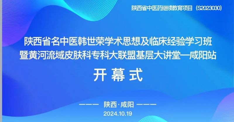 十月微涼,秋雨瀟瀟,桂香盈袖。值此收獲的季節,我們齊聚歷史悠久、文化底蘊深厚的古都咸陽,共同參與這場由陜西省中醫醫院主辦、延安大學咸陽醫院承辦的“陜西省名中醫韓世榮學術思想與臨床經驗學習班暨黃河流域皮膚科專科大聯盟基層大講堂—咸陽站”的學術盛宴。大會于2024年10月19日在陜西省咸陽市延安大學咸陽醫院順利召開。為進一步推動我國中醫事業的發展,本次會議秉承開放、思變、創新的精神,邀請多位國內著名中醫專家學者,共同分享中醫領域最新研究進展以及臨床診療方法和經驗。