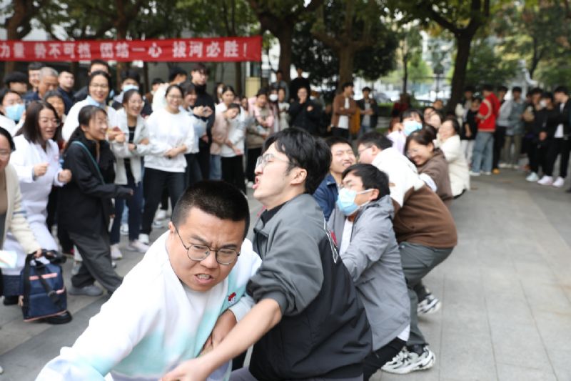 隨后,王紹輝部長宣讀2024年秋季拔河比賽活動規則及趣味套圈游戲規則。哨聲嘹亮,響徹賽場,宣告著比賽正式開始。 賽場上,參賽隊員雙手緊緊握住繩索毫不松懈,團結一心,不遺余力,奮勇拼搏,如雷聲般的口號在杏林廣場上久久回蕩。隊員們重心下壓,目光堅毅,用口號激起斗志,用盡全力爭奪榮譽。一根繩,一條心,一起拼。心往一處想,勁往一處使,標志勝利的紅絲帶來回移動。這場比賽不僅僅是力量的較量,更是團隊間的比拼,是凝聚力的比拼!震耳欲聾的加油聲在場邊此起彼伏,緊張熱烈的氣氛遍布在整個賽場。
