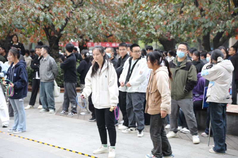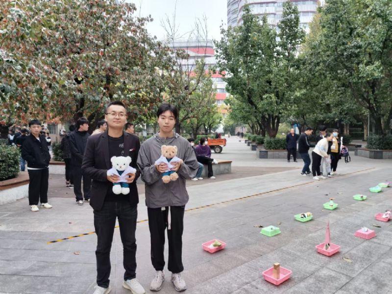 在趣味套圈活動中,場地中央擺滿了豐富多樣的獎品:毛絨布娃娃、護手霜、手提袋、鑰匙扣、保溫杯等一字排開,參與者們排起了長隊,個個躍躍欲試,期待套中自己心儀的獎品。每一次成功投擲,都伴隨著觀眾的掌聲與祝賀,整個活動氛圍歡快而溫馨。趣味套圈不僅帶給大家收獲禮物的喜悅,更讓同學們在輕松愉快的氛圍中釋放了學習與生活的壓力。