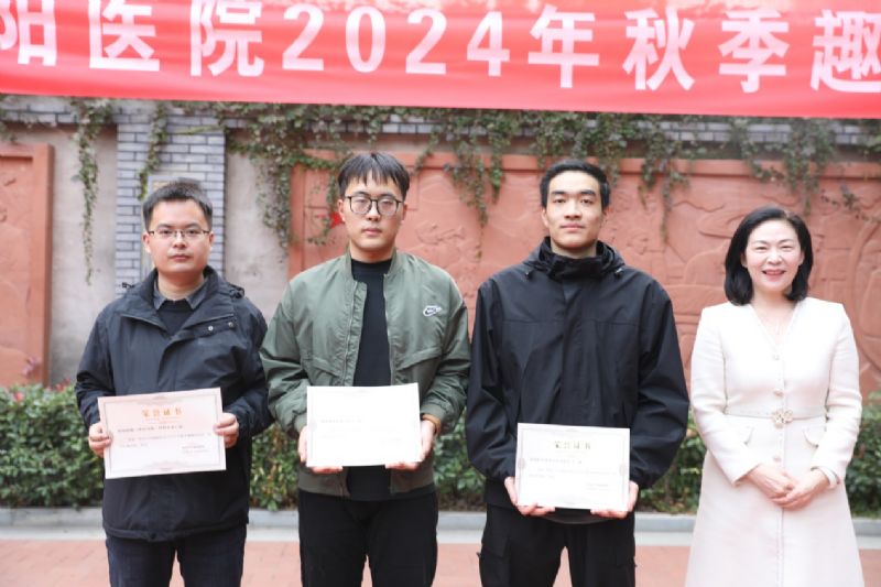 經過幾輪激烈的力量比拼和角逐,咸陽職業技術學院實習隊憑借強勁的體力與默契的配合勇奪拔河比賽一等獎,西安醫學高等專科學院實習二隊獲得拔河比賽二等獎,住培醫師(神經內科、外科專業)隊獲得拔河比賽三等獎。韓曉芳調研員為獲獎隊伍頒發了獎狀,并向所有參賽選手表達了熱烈的祝賀與鼓勵。拔河比賽不僅讓大家體驗了團隊協作的力量,更在賽場上展現了青春無畏、拼搏向上的精神風貌。