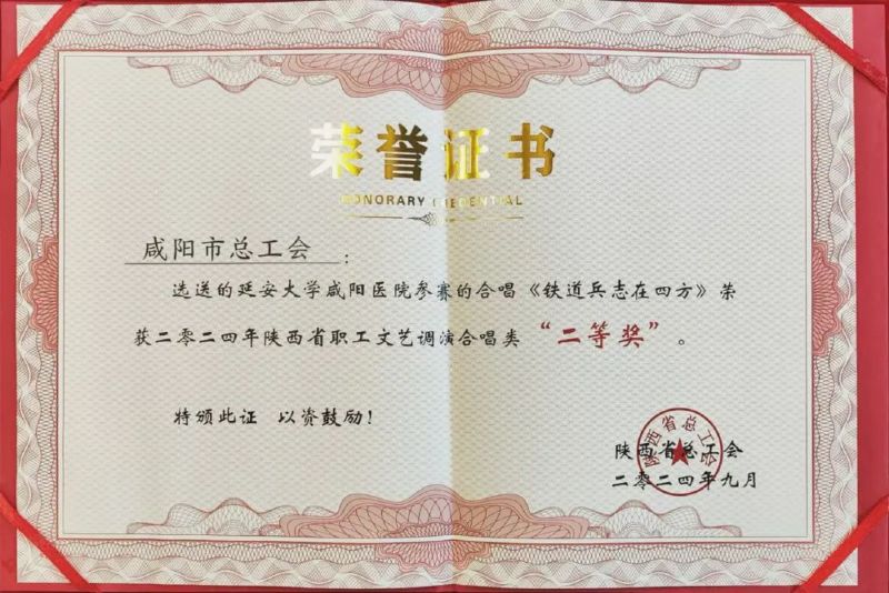 近日,由陜西省總工會主辦的“中國夢 勞動美 新征程 建新功”慶祝中華人民共和國成立75周年陜西省職工文藝調演暨合唱決賽專場圓滿落下帷幕。我院憑借深情激昂的合唱《鐵道兵志在四方》,在眾多參賽隊伍中脫穎而出,榮獲比賽二等獎,展現了我院職工團結向上、奮發有為的精神風貌。