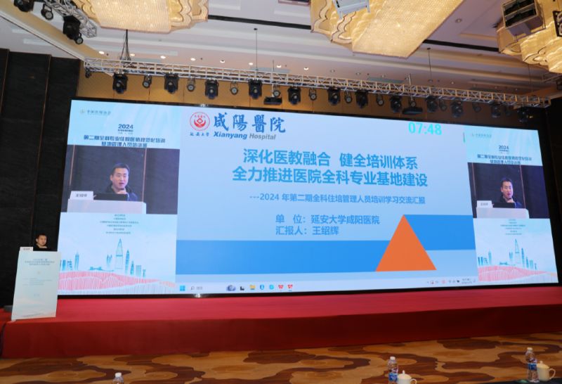 培訓班上,我院與南方醫科大學深圳醫院、南昌大學第一附屬醫院等10家優秀教學醫院一起,被選為大會交流發言基地代表。住培辦主任王紹輝代表我院作交流發言,他以《深化醫教融合,健全培訓體系,全面推進醫院全科專業基地建設》為題,全面展示了我院作為咸陽市最早開展住培工作的基地,在全科住培領域的探索與成果。他以聯動管理模式為切入點,詳細闡述了我院自2020年獲批全科專業基地以來,在各級政府及相關單位的支持下,通過領導牽頭、上下聯動、科室協作,逐步建立起一套科學完善的全科住培制度。