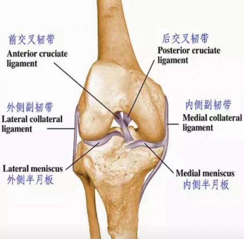 膝關(guān)節(jié)周圍有四條主要韌帶,幫助穩(wěn)定和支撐膝關(guān)節(jié)。最容易受傷的是前交又韌帶,它的發(fā)病率大概僅次于半月板損傷。