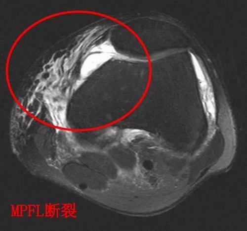 磁共振示:內(nèi)側(cè)髕骨韌帶損傷