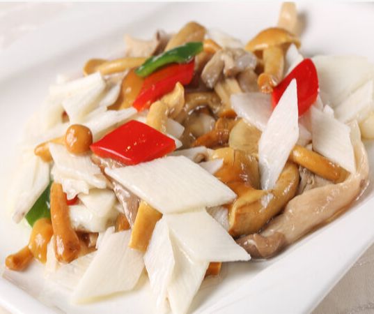 制作方法:先將蘑菇洗凈,再用熱水泡約10分鐘至變軟,泡菇水備用,同時將山藥洗凈去皮切小片,芹菜洗凈,也切成相同大小的段。炒鍋燒熱放人油,油熱后,依序加入蘑菇、山藥、芹菜炒熟,接著倒人泡菇水,待湯汁略收干后,用適量水淀粉勾芡,再加人適量醬油、鹽、味精調(diào)味即可。