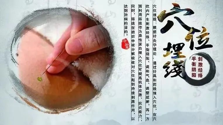 穴位埋線療法是在針灸經(jīng)絡(luò)理論的指導(dǎo)下,將可吸收的醫(yī)用蛋白線埋入相應(yīng)穴位,使其在穴位內(nèi)產(chǎn)生長久的刺激作用,從而達到調(diào)理臟腑、平衡陰陽、疏通經(jīng)絡(luò)、調(diào)和氣血、補虛瀉實、扶正祛邪等作用。與傳統(tǒng)針灸相比,埋線療法操作頻次減少,療效持久,可在慢性病、代謝性疾病及疑難復(fù)雜病癥上發(fā)揮其作用,又被俗稱為“長效針灸”。