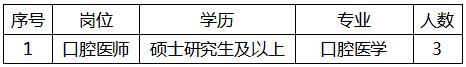 因延安大學咸陽醫院成立口腔病院,現面向社會招聘以下口腔醫師三名,具體要求如下: