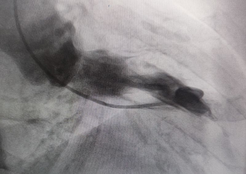 經(jīng)過多輪嚴(yán)謹(jǐn)?shù)男g(shù)前討論,在吳棟梁院長的專業(yè)指導(dǎo)下,崔旭輝主任醫(yī)師團(tuán)隊決定在臨時起搏器的安全保護(hù)下,為患者實施冠狀動脈造影術(shù)及室間隔化學(xué)消融術(shù)。術(shù)中,團(tuán)隊通過造影精準(zhǔn)鎖定第一穿隔支為消融靶血管。測壓數(shù)據(jù)顯示:左室壓260/15mmHg,流出道173/6mmHg,主動脈壓106/70 mmHg,壓力階差達(dá)87mmHg。隨后,團(tuán)隊使用2.0X15mm預(yù)擴(kuò)球囊以8atm壓力阻斷第一穿隔支遠(yuǎn)端血流1分鐘,再次測壓時,壓力從269/7mmHg驟降至174/4mmHg,這一結(jié)果充分證實該血管正是室間隔的有效供血血管。緊接著,團(tuán)隊通過SPRINTER OTW2.0×8mm球囊緩慢注入1.4ml無水酒精。10分鐘后復(fù)測,左心室壓降至136/5 mmHg,主動脈壓為112/93 mmHg。術(shù)后第2天,王女士胸悶、氣短、心悸等不適癥狀完全消失。復(fù)查心臟彩超顯示:EF值與FS值保持穩(wěn)定,收縮期左室流出道血流速度降至252cm/s,PG值為25mmHg。