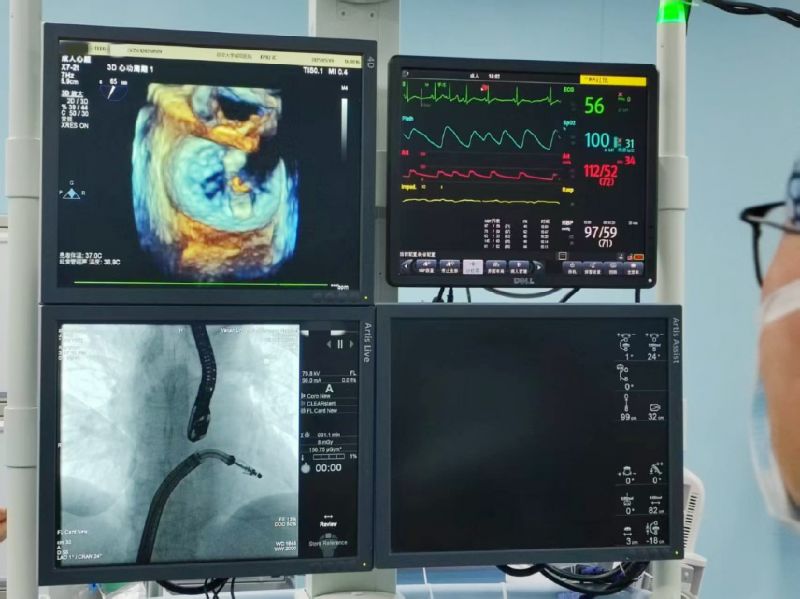 針對其疾病特點,心臟大血管外科武小剛主任、超聲科王英莉主任、CCU李新國主任、麻醉科王志濤主任、心血管內科導管室谷妮娜護士長等組織展開多學科會診、充分討論后考慮:患者高齡、體質弱無法耐受開胸手術,有行“經導管二尖瓣緣對緣修復術(TEER)”明確指征,與患者及家屬詳細說明手術方式、目的及可能存在的風險,患者及家屬同意手術。