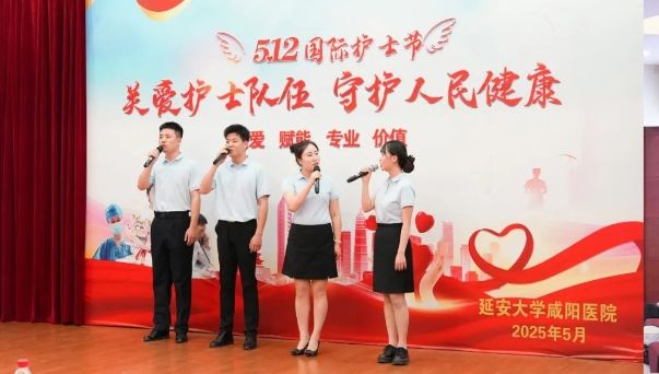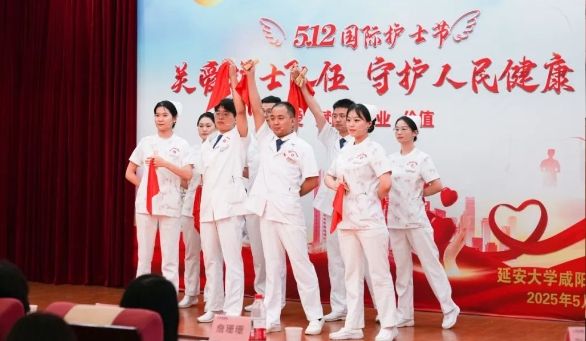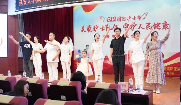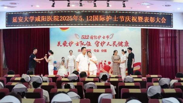 在第114個國際護士節到來之際,延安大學咸陽醫院于2025年5月8日下午在腦血管病院第三學術廳隆重舉辦主題為“關愛護士隊伍,守護人民健康”的護士節活動。精誠醫療集團董事局主席兼延安大學咸陽醫院董事長李衛軍、延安大學咸陽醫院院長姚曉峰、常務副院長吳棟梁及院領導班子成員、各職能部門負責人、全院護士長及受表彰的優秀護士、優質護理服務先進集體與個人、臨床護理優秀教學集體及優秀帶教老師,全院護士代表370余人參會,共同致敬新時代南丁格爾精神的踐行者。