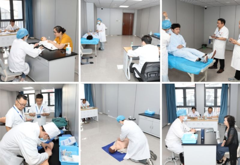 臨床基本技能操作考試在我院臨床技能培訓中心五樓OSCE考站進行,主要考查病史采集、體格檢查和基本操作技能,同時對溝通交流能力與人文關懷進行評價。技能操作采用OSCE多站考核,每組6站,分為兩組,共12站同時進行。負責人前期在考試物資籌備、考官培訓、考務安排、標準化病人和志愿者培訓、考試模擬演練等方面做了大量工作,確保了技能考試的順利完成??荚嚻陂g,考官嚴肅認真,考務人員細心周到,各環節銜接順暢,技能操作考試圓滿完成。本次測試是我院第三次承接臨床醫學專業國家級考試,相較于2023年首次開展此項工作,我們本次的經驗更加豐富,相關細節更加完善,考試現場更加高效,這標志著我院不僅有資格承接國家級考試,更說明我院有能力做好國家級考試。