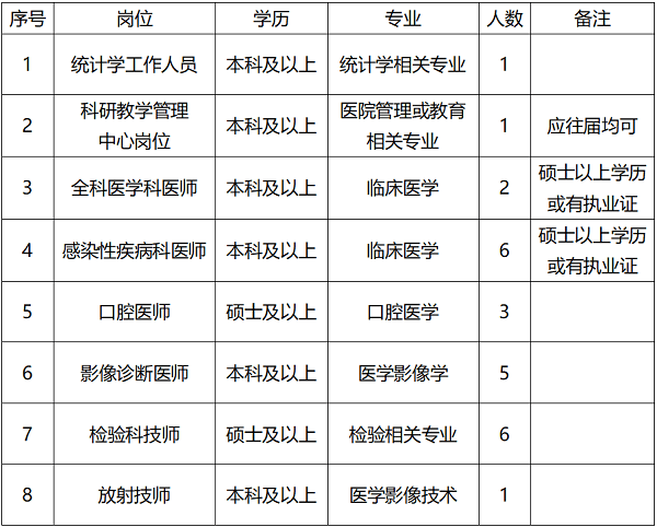 根據醫院發展需要,延安大學咸陽醫院現面向社會招聘各專業工作人員,具體要求如下: