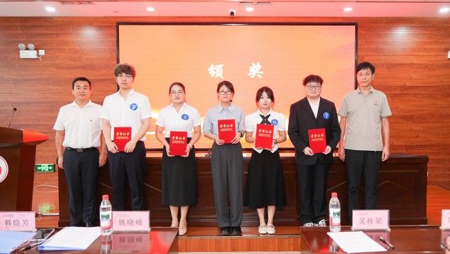 科研教學管理中心副主任陳青、內科病院副院長張玉河為榮獲三等獎住培醫師頒獎