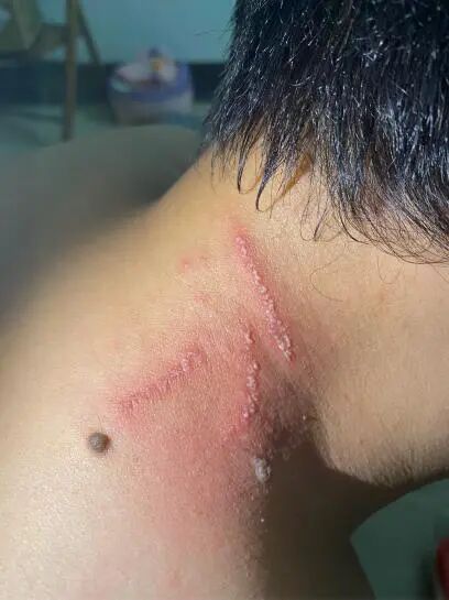 典型皮損形態: 呈條狀、線狀或斑片狀的紅腫,就像被鞭子抽打過一樣,上面還可能出現密集的丘疹、水皰甚至膿皰。