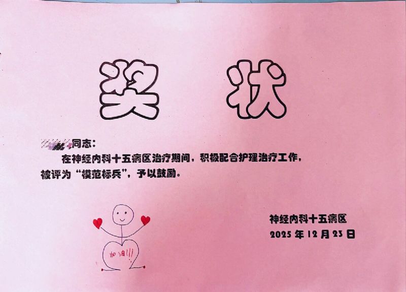 一張獎狀,拉近了醫(yī)護與患者的心,讓“敘事護理”在溫情中點燃康復信心。這背后,是醫(yī)者與患者共同奔赴的希望。