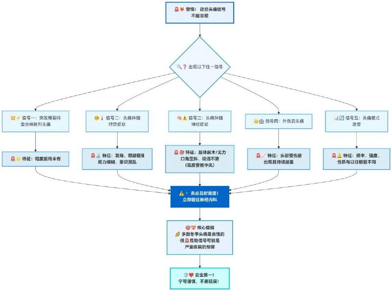 多數冬季頭痛是良性的,但如果出現以下“危險信號”,可能是嚴重疾病的預警,務必及時到專科就診: