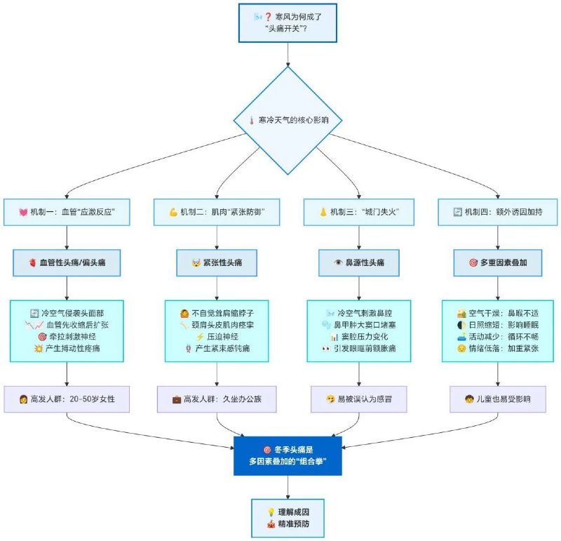 冬季頭痛絕非空穴來風,核心誘因都藏在寒冷天氣的影響里: