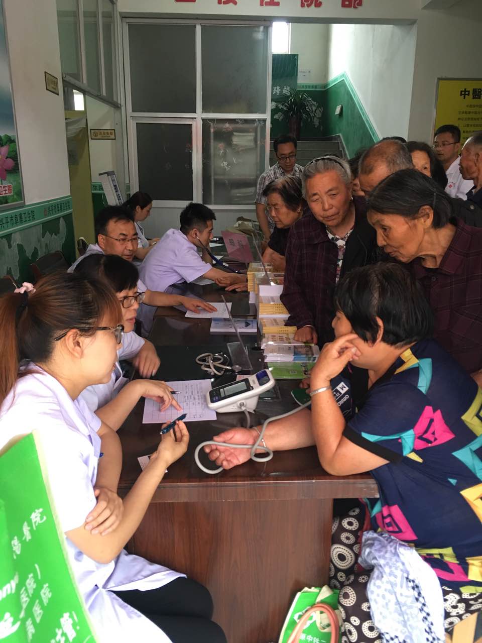 屋外雨疾風驟,可屋內卻是熱情洋溢。各專業專家不厭其煩的解答群眾的咨詢,并為居民義務檢測了血壓、血糖,還對前來參加義診居民講解定期檢查身體的重要性,鼓勵他們要樹立積極樂觀的生活態度,養成健康的生活習慣。此次義診活動,共接待居民百余人,提高了居民的健康意識,防病意識、治療知識,同時也提高了群眾生活質量,尤其對于不少出行不便的老人來說更是緩解了他們的燃眉之急。