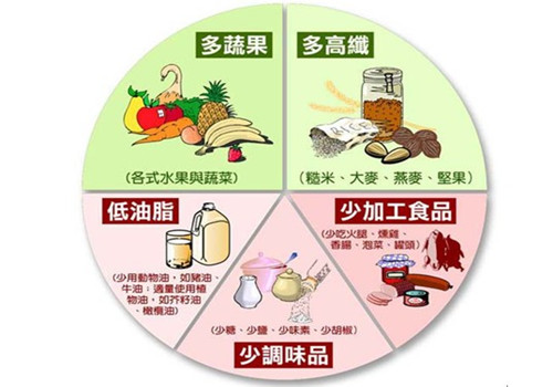 3.低熱量飲食 盡量控制糖類(米飯、饅頭)的輸入,避免油炸、重油和腌制食品。多新鮮蔬菜和水果,每日蔬菜不少于400g,水果200~400g。多吃粗糧和膳食纖維含量高的食物,如高粱、燕麥片、麥胚、麩皮和芹菜等。