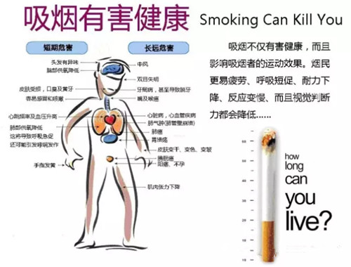 煙草的使用會(huì)帶來痛苦、疾病和死亡,使家庭陷入貧困,國民經(jīng)濟(jì)遭到削弱。吸煙者的肌力、敏捷、協(xié)調(diào)、步態(tài)、思維、反應(yīng)、生活能力和平衡等在內(nèi)的12種身體狀態(tài)遠(yuǎn)遠(yuǎn)差于不吸煙者。健康專家指出,吸煙有害健康, 可以說是有百害無一利,證據(jù)確鑿。