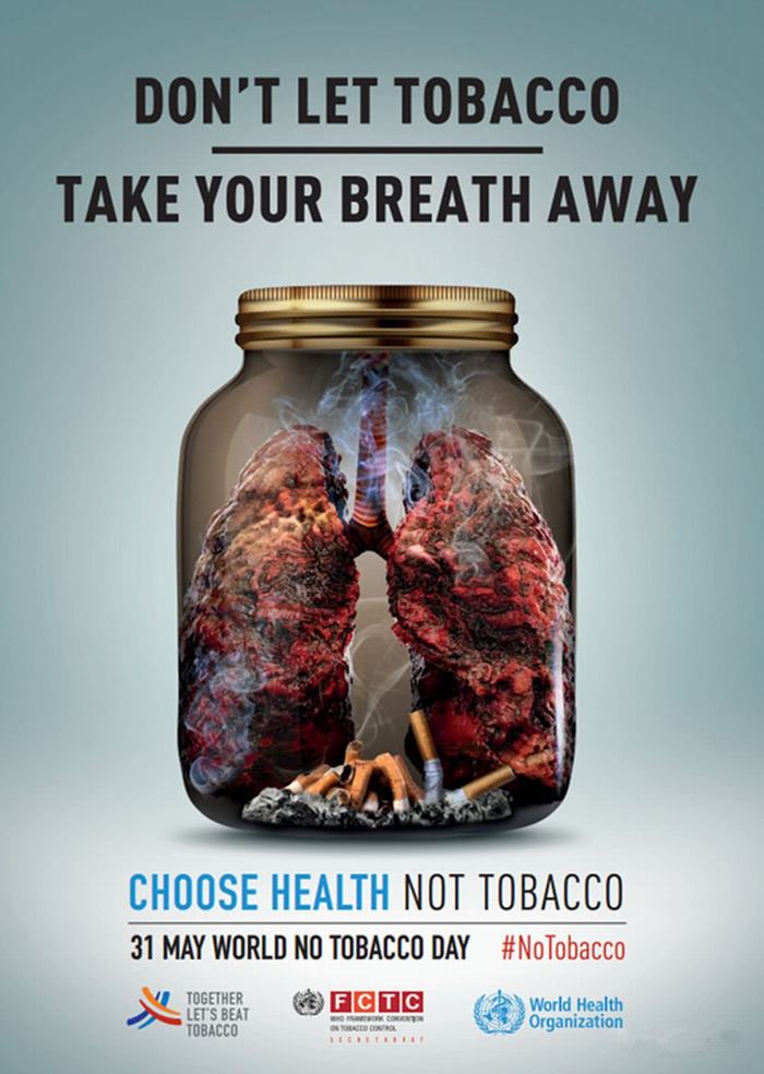 5月31日是世界無煙日,由世界衛生組織(WHO)于1987年發起,旨在呼吁全球對煙草流行極其致命影響的重視。2019年世界無煙日的主題為“煙草與肺部健康”。該活動將提高人們對以下問題的認識:煙草對人們肺部健康的負面影響,從癌癥到慢性呼吸道疾病,肺對所有人的健康和福祉發揮著根本作用。該運動還呼吁采取行動,倡導有效的政策以減少煙草消費,并讓多個部門的利益相關者參與煙草控制的斗爭。