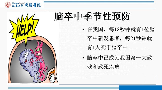 2019年10月29日是第14個(gè)“世界卒中日”,宣傳主題是“預(yù)防為主,遠(yuǎn)離卒中”,口號(hào)為“遠(yuǎn)離卒中,從健康生活開(kāi)始。