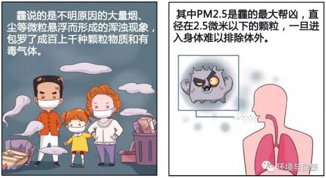 霧霾:是霧和霾的統(tǒng)稱。霧和霾兩種不同的天氣現(xiàn)象,通常混合在一起出現(xiàn),盡管在定義上有明確的區(qū)別界定,但在實際觀測和研究中卻并不容易區(qū)分,所以經(jīng)常統(tǒng)稱為“霧霾天氣”。霧的組成比較簡單,主要由大量懸浮在近地面空氣中的微小水滴或冰晶霧滴組成,而霾的組成成分則非常復(fù)雜,有害物質(zhì)通常大部分富集在細顆粒物(PM2.5)上,目前已知的主要成分包括:硫酸鹽、硝酸鹽、銨鹽、重金屬、地殼物質(zhì)、含碳顆粒等。