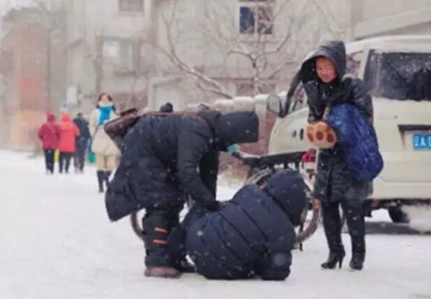 雨雪導致路面濕滑,應穿著鞋底紋理較深的防滑鞋,緩步慢行,走路時兩腳分開,與肩同寬,身體略向前傾,如滑雪狀;盡量踩在厚的積雪上,避開浮冰和積水的地方,這樣可以減少鞋底和地面向前的摩擦力,降低摔倒的可能性。