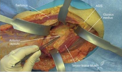 Hueter 間隙:闊筋膜張肌和縫匠肌之間的解剖間隙,可利用之進入前方髖關節。