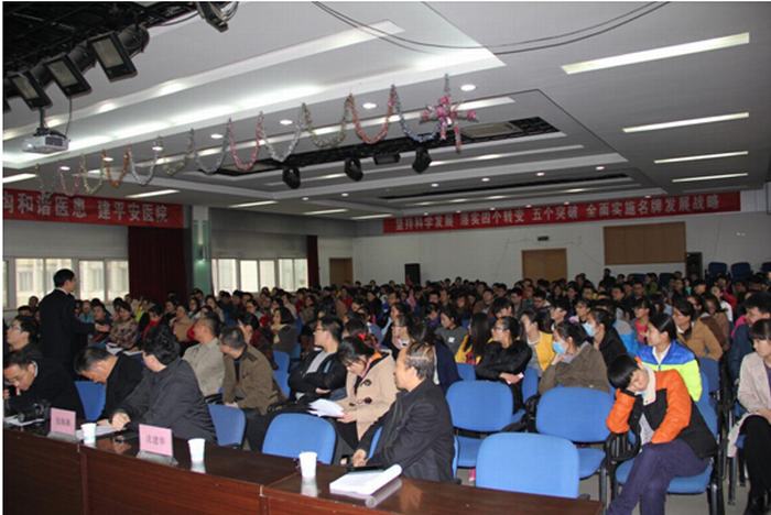 會上,趙長海教授首先以臨床護理工作為大家講授如何通過日常護理工作的微小細節來發現問題、分析問題和處理問題;他提出對疾病的知識掌握程度僅僅是以小方面,最重要的是通過這些細節去啟迪思想,探索求證疑問。之后,趙教授分別從人才興科、科教強科、質量建科、特色辦科、文化立科等五個方面全面介紹了學科建設和文化建設的重要性,激發我院廣大醫務人員主動培養屬于自己的“思維、習慣、激情 ”。到場的廣大醫務人員在聽講的2個多小時中全神貫注,整個會場落針可聽,充分體現了青年醫務人員對趙教授的欽佩和敬仰。