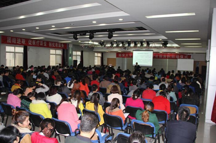 2015年11月10日的下午,綜合樓四樓會場座無虛席、人潮涌動,由科教部主辦的2015年延安大學咸陽醫院名師講壇第十二講在我院成功召開,本次會議我們特邀西京醫院趙長海教授為大家做了《舌尖上的安全》和《個人品牌建設》的專題講座。科技局林勝利副局長、劉增用科長,我院張海濤副院長、沈建華副院長、科研教學管理中心韓曉芳副主任、科教部王丙聚部長以及部分科室主任、護士長和來自全院的醫務人員共計300多人到場聆聽了此次講座。