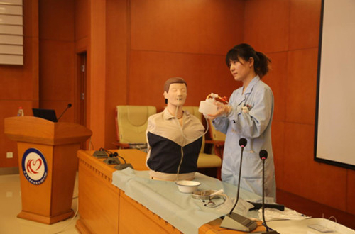 為更好的提高我院住院醫(yī)師規(guī)范化培訓(xùn)學(xué)員基本技能操作水平,夯實(shí)專業(yè)基礎(chǔ)、規(guī)范技能操作進(jìn)而提高醫(yī)療質(zhì)量和我院住培醫(yī)師規(guī)范化培訓(xùn)工作質(zhì)量,由住院醫(yī)師規(guī)范化培訓(xùn)管理辦公室組織,為期一個(gè)月的24項(xiàng)基本技能集中培訓(xùn)及考核在我院心臟樓20層第一學(xué)術(shù)廳如期舉行。科教中心韓曉芳主任、住培辦王紹輝主任、住培辦李翠同志及100多名各級(jí)住培學(xué)員參加了首日的培訓(xùn)。