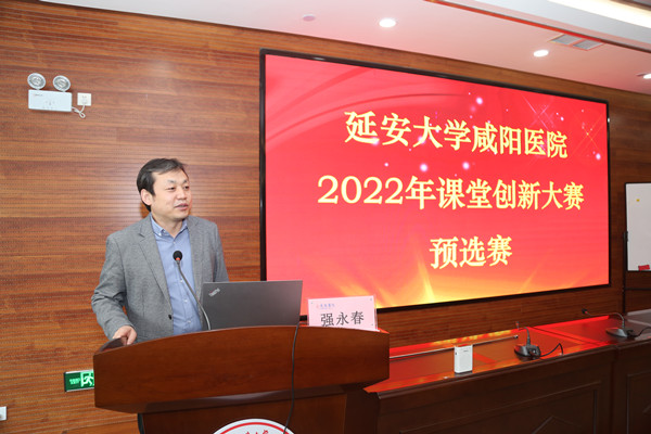 預賽開始前,王紹輝副部長對比賽的重要性進行了強調,并對教學單位和參賽教師提出了要求。一是本次預賽院里高度重視,意義非同一般;二是課堂教學是打造金課的主戰場,通過創新的形式改革課堂教學,是提高教學質量、進行教學改革的重要路徑;三是通過比賽中切磋交流,有效促進教師快速成長,教學能力快速提高。王部長希望各位教師要充分展示自己的風采,評委要客觀公正地推薦出優秀教師參加延安大學2022年課堂教學創新比賽決賽,為醫院爭光。
