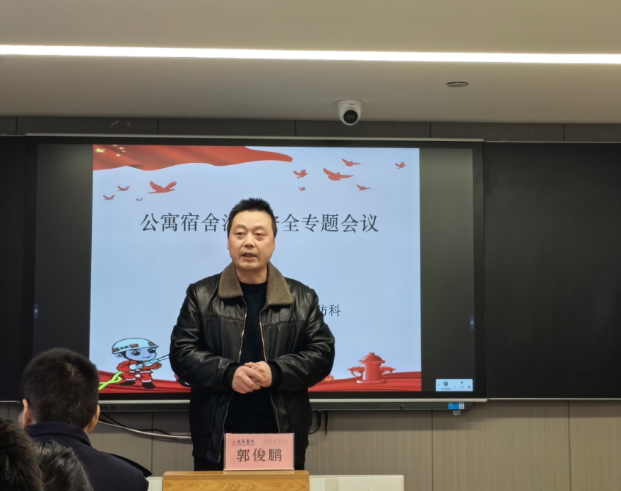 消防科郭俊鵬科長從火警事故報道引入主題,向各位實習生強調警鐘長鳴,切莫疏忽大意。隨后針對宿舍安全大排查中發現的問題向同學們指出安全無小事,人走斷電,不違規使用電器等,希望各位實習生提高消防意識。