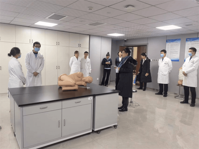 在聽取了我院住培工作匯報后,專家組一行分三組進行了現場檢查與考核。專家組一行通過聽取科室匯報、查閱資料、參加教學查房、學員座談、技能操作等多種方式了解了我院住培工作的基本情況;同時對我院臨床技能培訓中心、電子閱覽室以及住培醫師宿舍進行了實地走訪和評估。