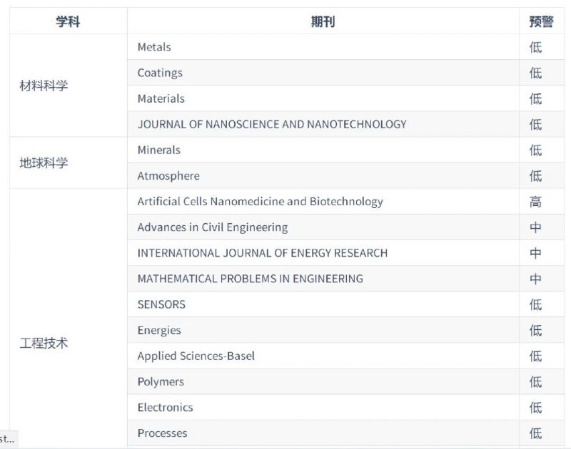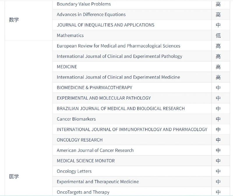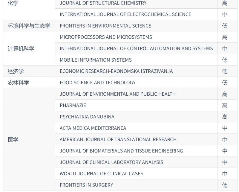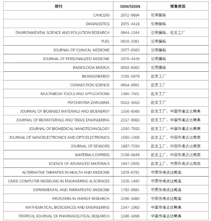 2020年《國(guó)際期刊預(yù)警名單(試行)》: