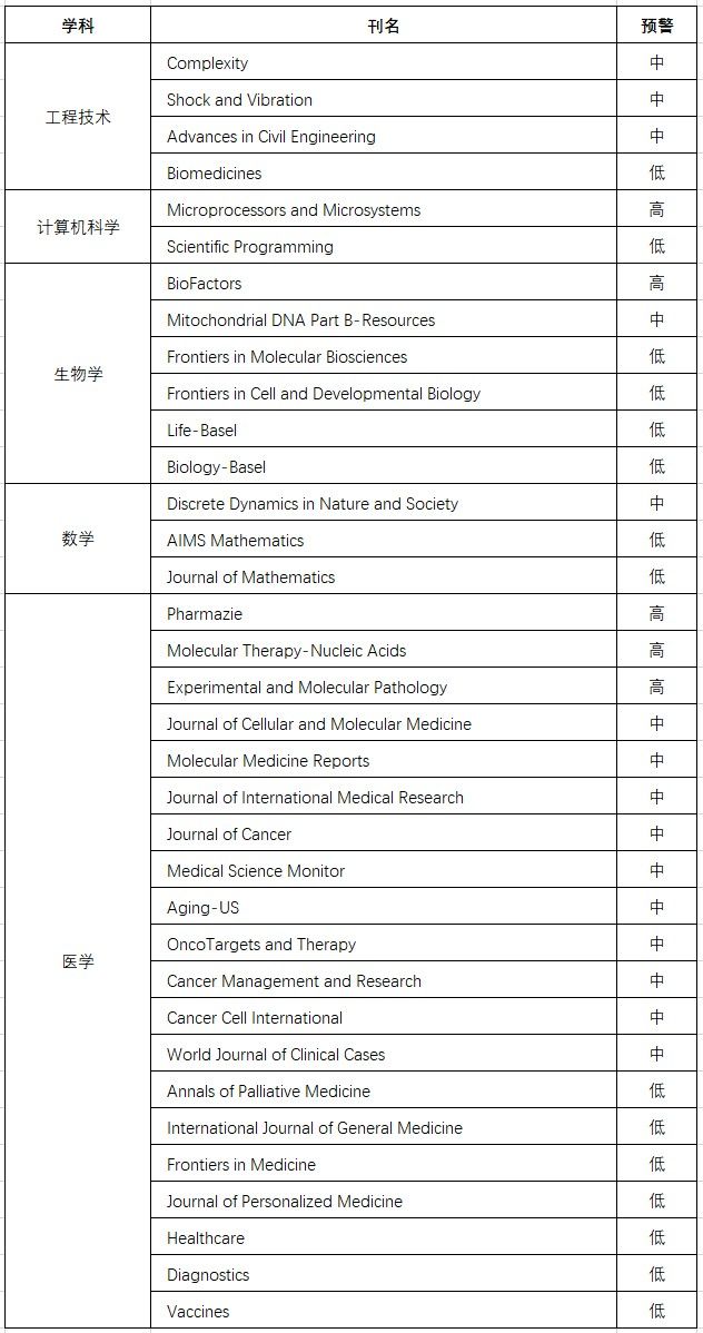 2021年《國(guó)際期刊預(yù)警名單(試行)》: